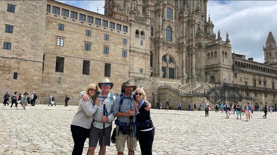 Made it to Compostelo de Santiago today with my best friend and brother. The day was very special and was made more special when our beautiful wives, Kristine and Beth were at the Cathedral to meet us. I will provide more details later. Right now I’m headed for a tub in the 5 star hotel Paradores de Santiago to soak my feet and body!
